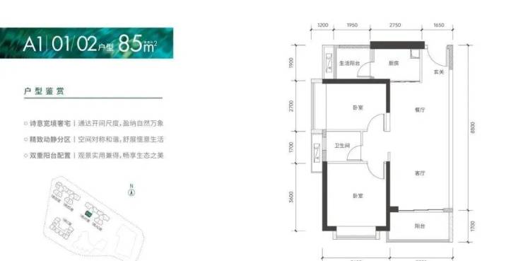 面积段:50㎡的1房1厅,70-85㎡的2房1厅,95-105㎡的3房2卫,120-150-180㎡的4房2卫户型