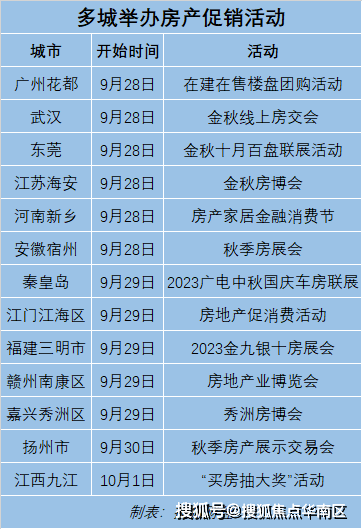 河南新乡将召开房产家居金融消费节,汇集了新乡14家开发企业30多个楼盘;江苏海安举办金秋房博会,19家市内主城区楼盘参展……
