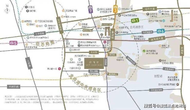 项目的位置非常巧妙,正好处在姑苏、吴中和园区三区交汇的黄金地带,可以说是连接各区的枢纽。既能享受到金鸡湖西和独墅湖西的双湖资源,距离园区的主干道星港街也只有1公里左右。生活在这里,向左是湖西CBD、苏州中心、东方之门这样的繁华商圈,向右是中央公园、独墅湖这样的天然氧吧,真正做到了繁华与宁静的平衡。这里是名副其实的苏州核心地段。