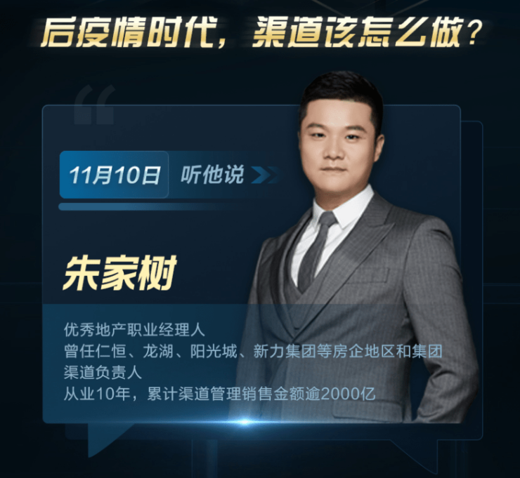 在直播过程中,深耕地产渠道领域10余年,累计渠道管理销售金额逾2000亿的朱家树老师,为大家分享了《后疫情时代,渠道该怎么做?》。
