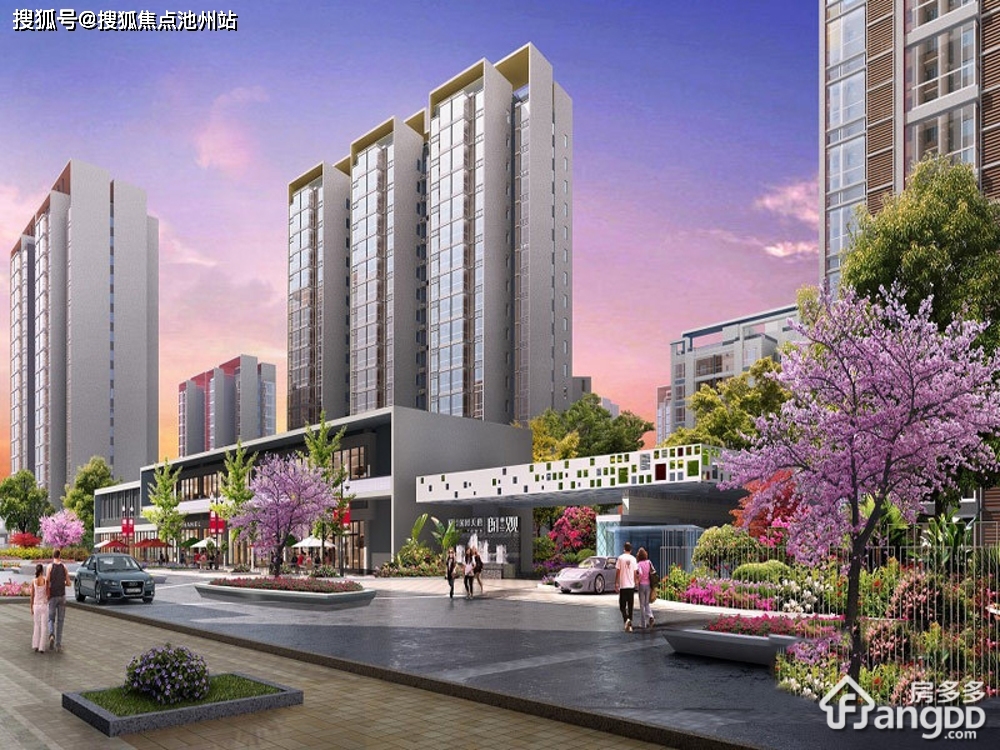 园区一周为花园洋房,园区中间为合院。封闭式管理,人车分流