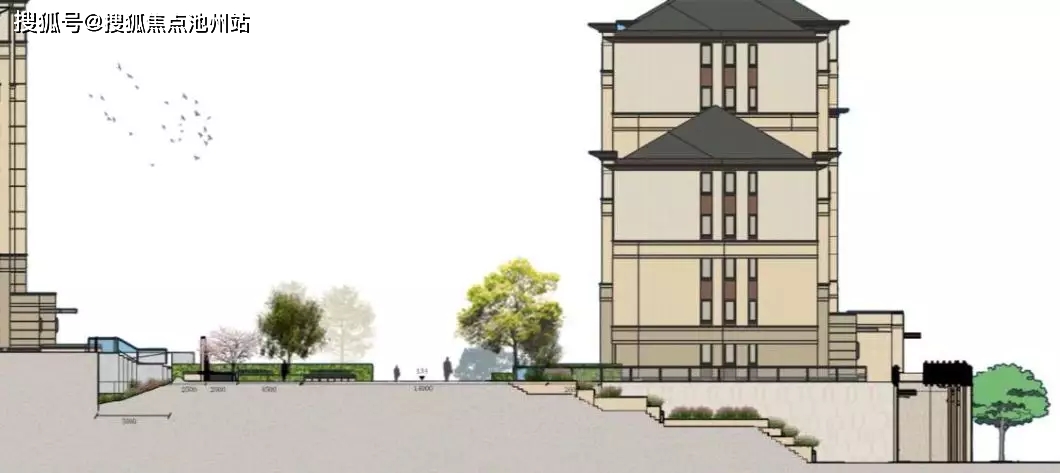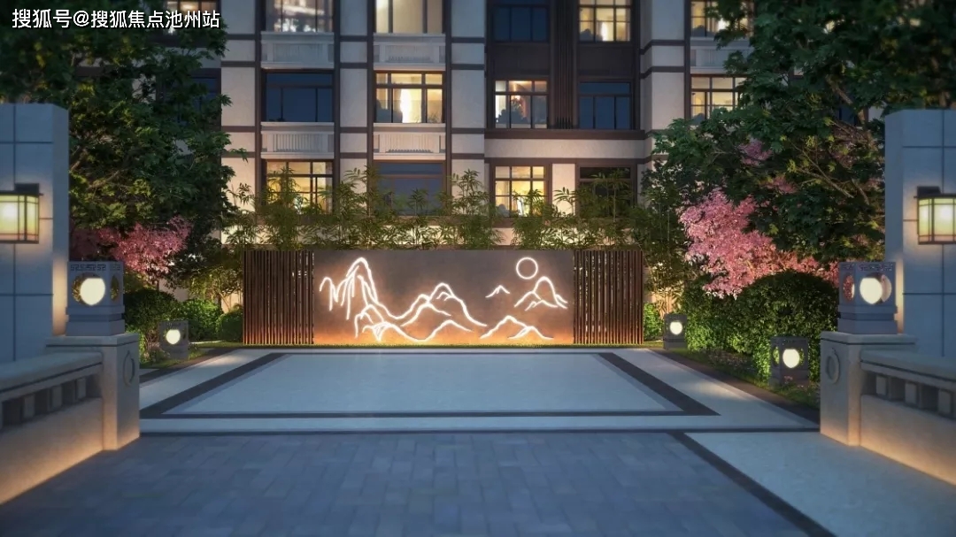 于绿色掩映之中的叠水照壁,见证尊荣家庭的不凡,给居者归家途中创造一幅尊崇雅致的归家美景。起伏山峦在幕墙中,书写着水墨意蕴,呈现出燕归西山的美好画卷。建筑与景观和谐共融,舒心的归家体验和仪式感就此展现。