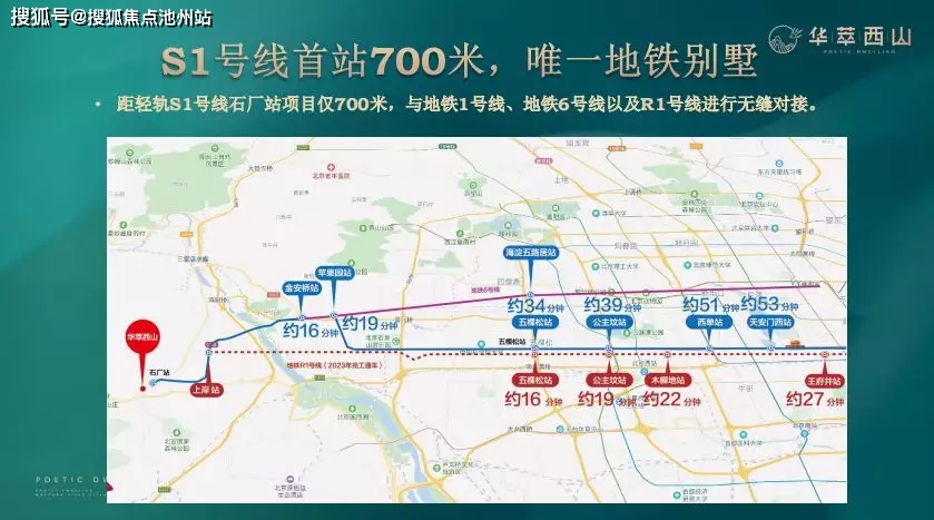 三横四纵双轨道,项目出门向东走700米即可到达地铁s1号线石厂站(已通车可直接换乘6号线),上岸站可换成R1线(2023年竣工);开车出门3分钟上莲石路,与长安街西延线仅2.5公里,同时享受老城区阜石路快速路。