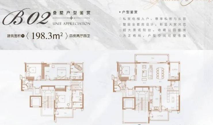 叠墅面积:约165-203㎡