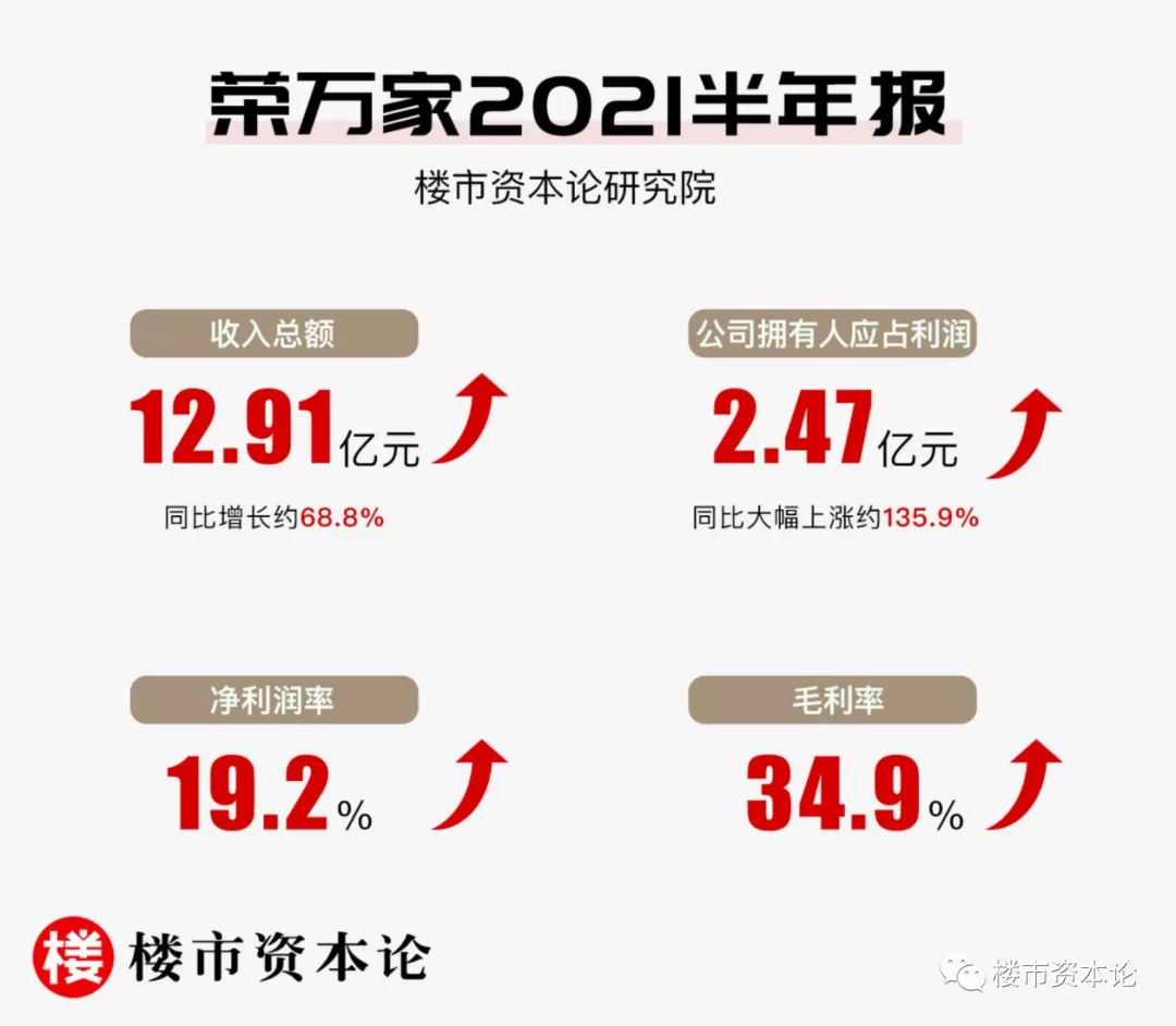 在盈利方面,今年上半年,荣万家实现收入总额约12.91亿元,同比增长约68.8%;公司拥有人应占利润约2.47亿元,同比大幅上涨,增幅约135.9%;净利润率、毛利率双双同比上涨,分别增至19.2%及34.9%。