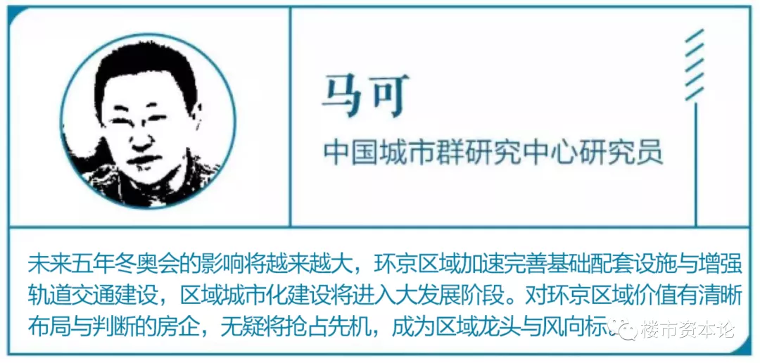 中国城市群研究员马可表示,未来五年冬奥会的影响将越来越大,环京区域加速完善基础配套设施与增强轨道交通建设,区域城市化建设将进入大发展阶段。对环京区域价值有清晰布局与判断的房企,无疑将抢占先机,成为区域龙头与风向标。
