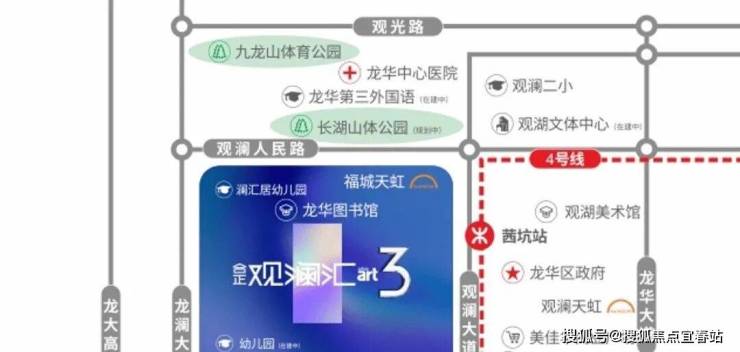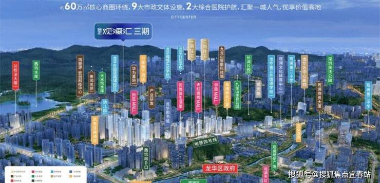 ◎观澜,龙华行政中心,与红山商业中心、老政商贸中心形成龙华三大中心;项目与龙华区政府一路之隔,区政府、公检法大楼等市政机构入驻,承接区域规划红利。