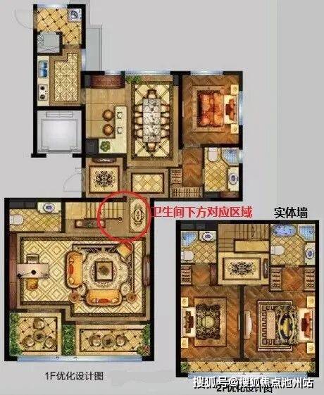 更令人不适的是,上层其中一个卫生间,下层对应的是与客厅相连的区域,让不少购房者感到膈应。