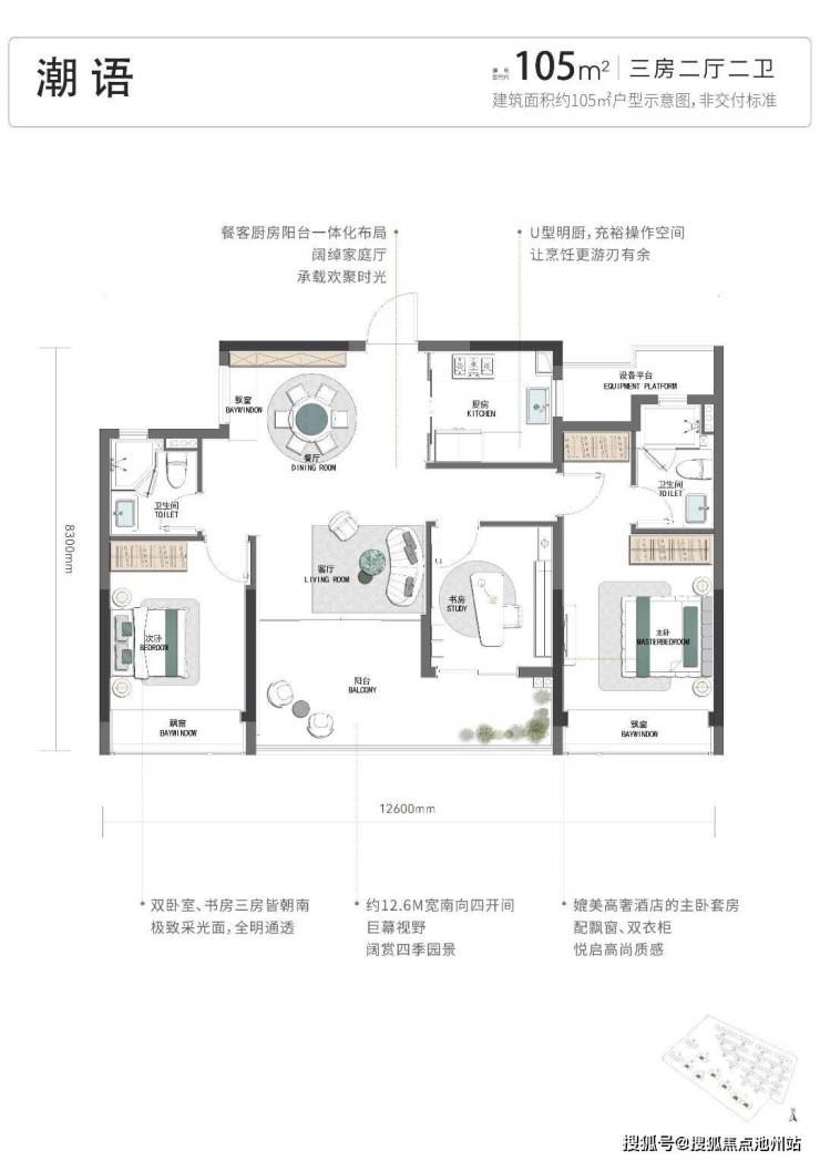潮映杭园即将首开总价300万级墅区小高层,建筑面积约105㎡、127㎡、130㎡户型即将重磅面市。为最大化2.1万方中央园林的景观视野,项目突破性设计了建面约105㎡赏景四开间,建面约127㎡L型瞰景视野,建面约130㎡环景全面屏。