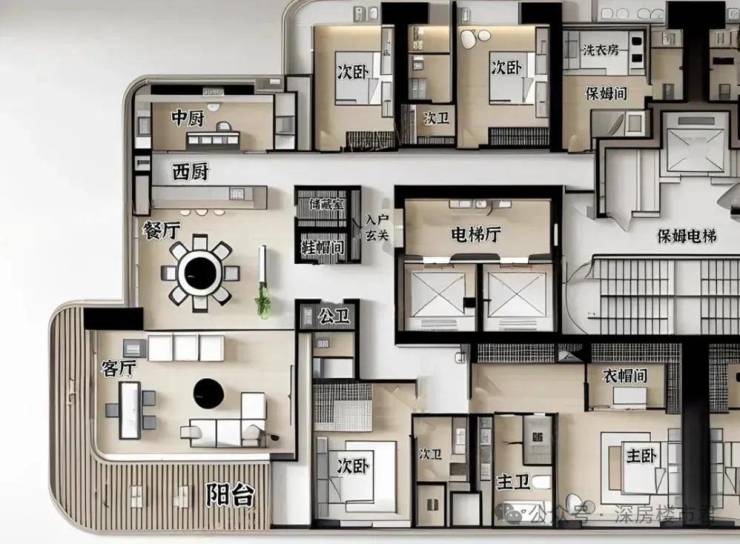 5梯2户:近乎私梯的配置(平均2.5梯服务1户),出行便捷无忧。适合追求极致空间体验与顶级服务的家族或精英领袖。