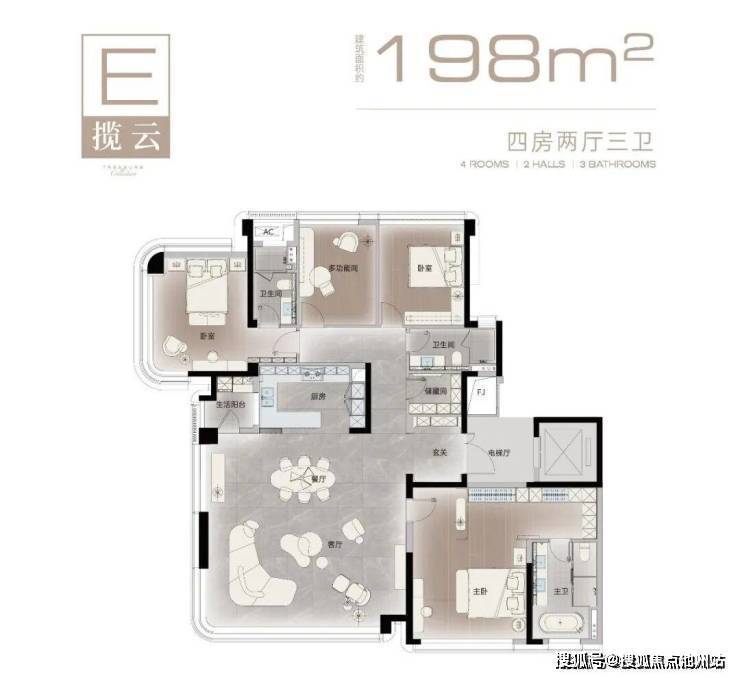 项目规划建面约181㎡—244㎡多样化户型,所有户型均为4房户型,满足高端客户终极改善需求。其中建面约198㎡和244㎡户型是主力产品。