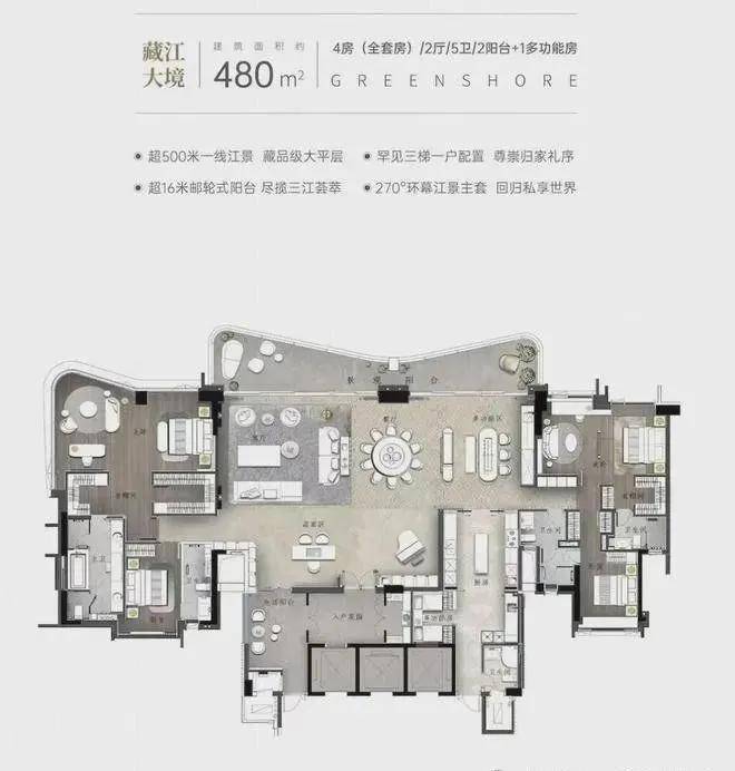 画江为界,跨越时代的岛尖藏品,4套房2厅5卫+1多功能房设计,4.0时代人居范本,重新定义珠江豪宅天花板。