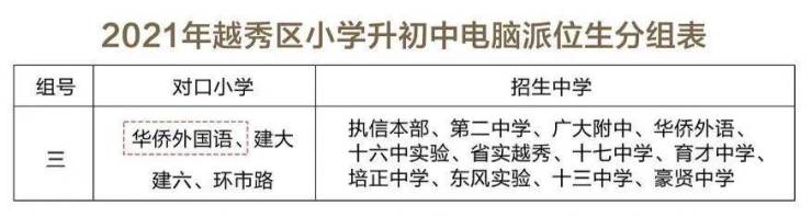 并且,2021年越秀区小升初电脑派位分组中,汇聚3间市属省级重点中学( 执信中学、广州二中、广大附中)、 3间区属省一级中学( 培正中学、 十七中、省实越秀中学),共12间重点优质公办学校,是越秀区小升初派位组别中的至优配置!