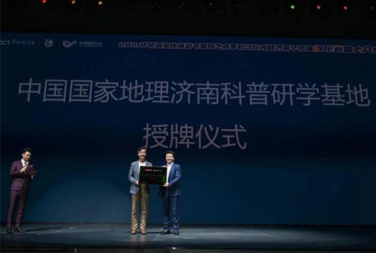 中科院地理科学与资源研究所研究员、《中国国家地理》杂志社社长兼总编辑李栓科表示,中国国家地理探索中心将中国独特的从海洋到世界屋脊独特的自然特点,丰富而独特的动植物资源、不断突破未知和边界的科学精神等内容,结合5G、VR、AR等新技术和互动设备给中国家庭打造“难以企及、难以获得,难以观察”的优质体验,打造三大模块47项互动体验。《中国国家地理》将发挥强大的资源整合能力,用好品牌、好内容为山东文旅赋能添彩。随后,李栓科先生为华侨城欢乐荟正式授牌“中国国家地理济南科普研学基地”。