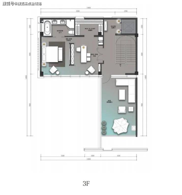 三层端厅式大空间,只打造尊贵一室,利用近乎一整层的面积来满足供主人休憩+工作结合的心灵栖息之地,南向270°大采光面+超广角视野,赏一年四季风景如画。独立步入式衣帽间及带浴缸大卫生间的点缀,更加彰显仪式感、开阔感、功能性、舒适性、私密性强。
