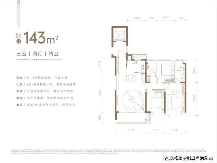 更重要的是,该户型高层还能西南向看江,未来业主站在阳台上、坐在主卧的飘窗上抬头就是远方的江景和夕阳,真正做到了景观与舒适度兼得。