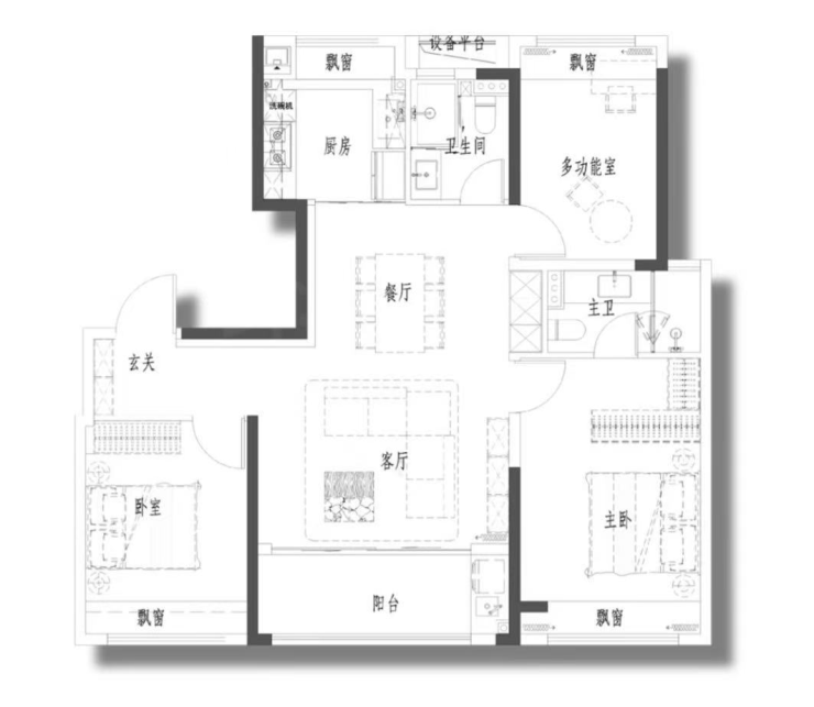 该户型同样也是全卧飘窗。