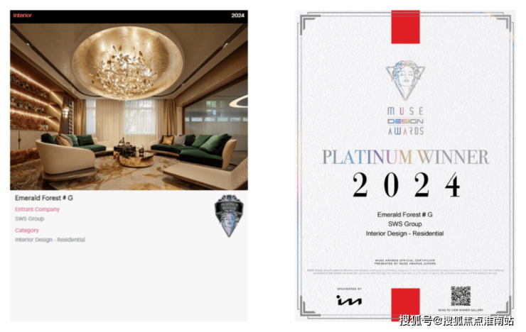 绿宝园·翡梵在2024年美国MUSE Design Awards第二季度评选中,荣膺最高荣誉铂金奖与金奖,这一殊荣在全球范围内也实为罕见。MUSE Design Awards由国际奖项协会(International Awards Associate)主办,是全球最具影响力和权威性的设计赛事之一,旨在遴选“设计缪斯”,表彰那些推动全球设计进步的艺术作品。在众多国际作品中脱颖而出,摘得铂金桂冠,足以彰显绿宝园·翡梵在全球设计领域的卓然视野和艺术造诣。