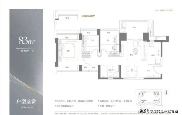品质美宅:建面约83-113㎡3-4房品智美学住宅,多面宽朝阳,揽清风入怀。