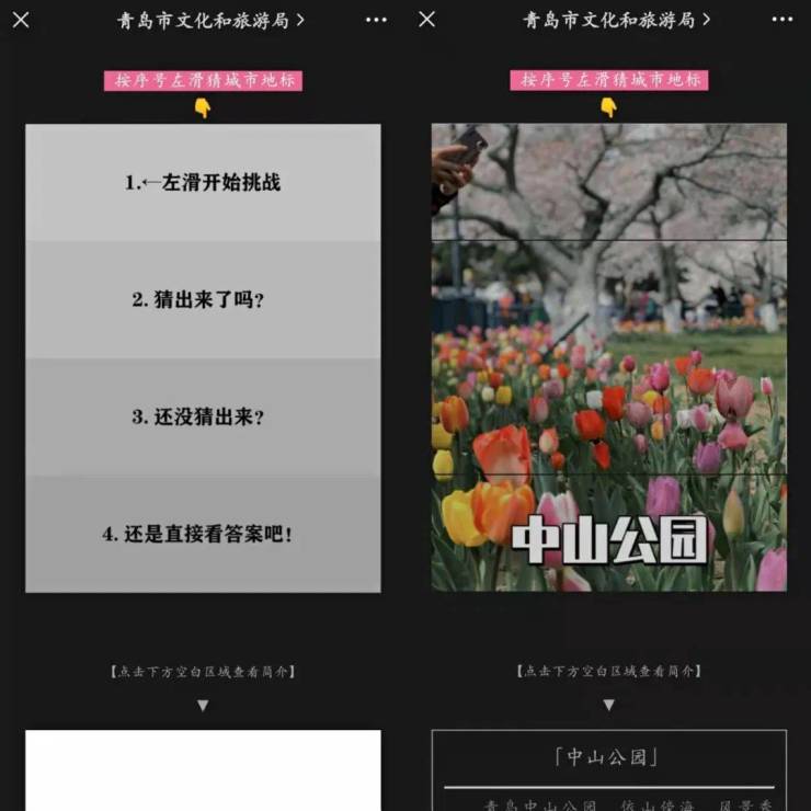 青岛市文旅局则通过在公众号中发布一则有趣的h5,展现了青岛城市地标们的“春季限定皮肤”,虽然暂时笼罩在疫情的阴影中,但相信待疫散云开后,定会再同游。