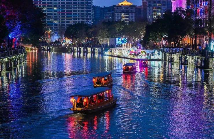 锦江夜游项目在2022年春节期间进行了大升级,新增锦江游船升级航线,营造春节景观照明氛围,还有特别准备的新春国风创意市集……过年氛围组全体就位!