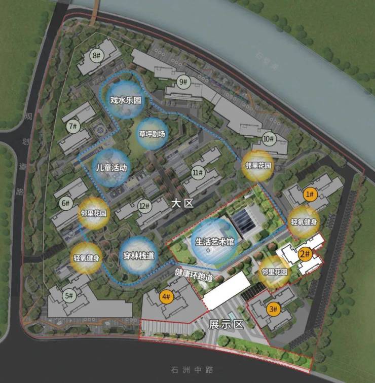 水景:外河公园、内河碧道玉带环腰,打造沿江商业风情街。