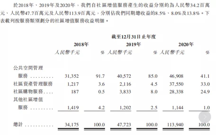 具体来看,在社区增值服务中,传统的公共空间管理服务营收占比大幅下滑,相应的社区资产管理服务与社区购物服务营收占比迅速提升。