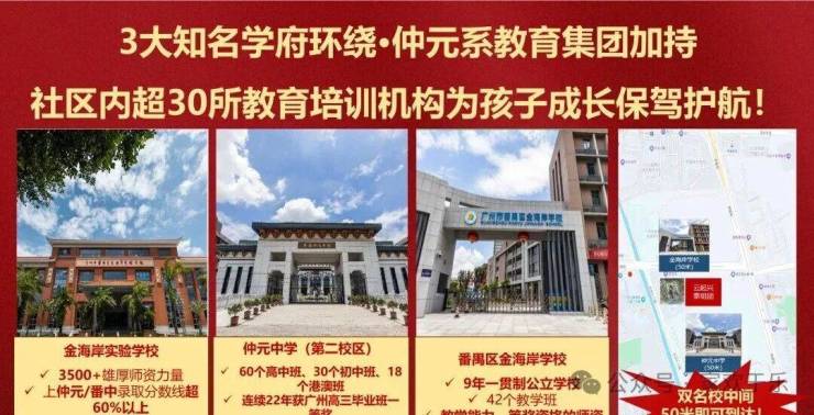 金海岸花园注重教育资源的投入,小区紧邻9年一贯制的金海岸实验学校和金海岸学校,还有番禺闻名遐迩的仲元中学,多所优质品牌学府云集;