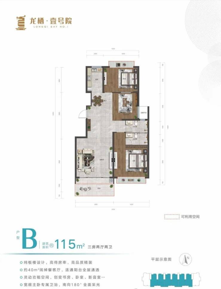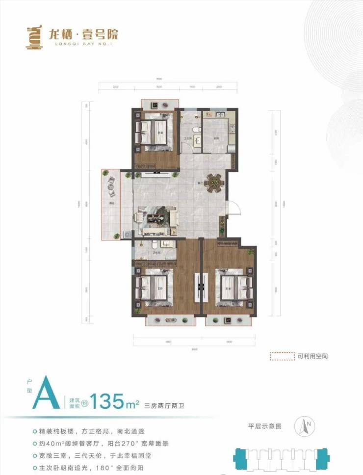 🏕在售户型:115㎡、135㎡,三房两厅两卫