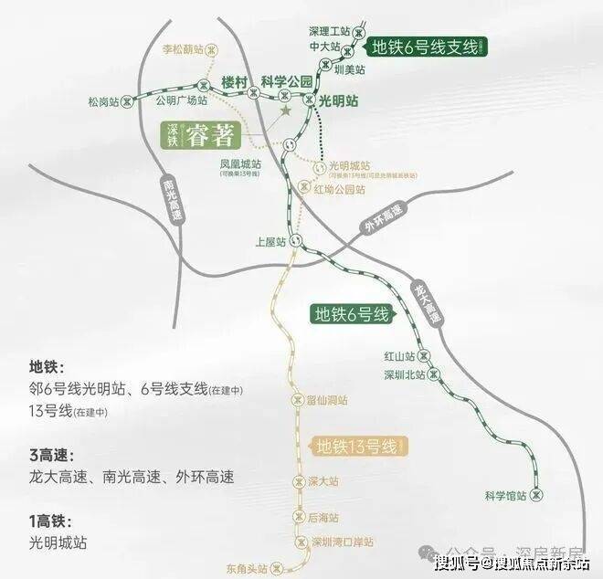 3地铁:邻6号线光明站、6号线支线 (在建中)、13号线 (在建中)