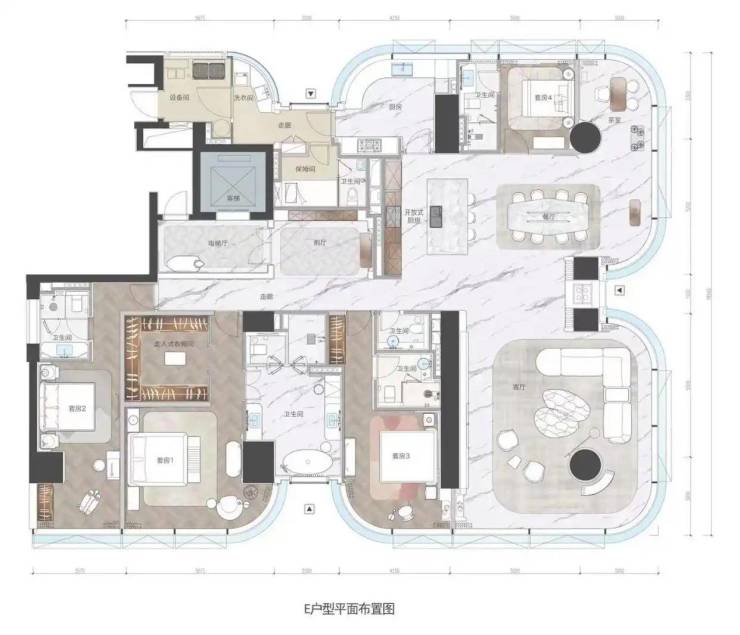 主力户型与赠送空间:主打375平方米大平层,赠送面积高达107平方米,得房率达93%,空间利用率在同类产品中极具竞争力12。