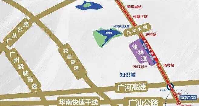康大龙祥汇横跨地铁知识城支线“旺村站”及“汤村站”,从项目出发换乘地铁21号线快线,最快4站即达天河;同时,项目位于中新知识城南起步区门户,紧邻广河高速九龙出口,经广河高速接驳华南快线干线,高速30分钟直达珠江新城,9分钟直达白云机场,45分钟到达湾区各大城市。