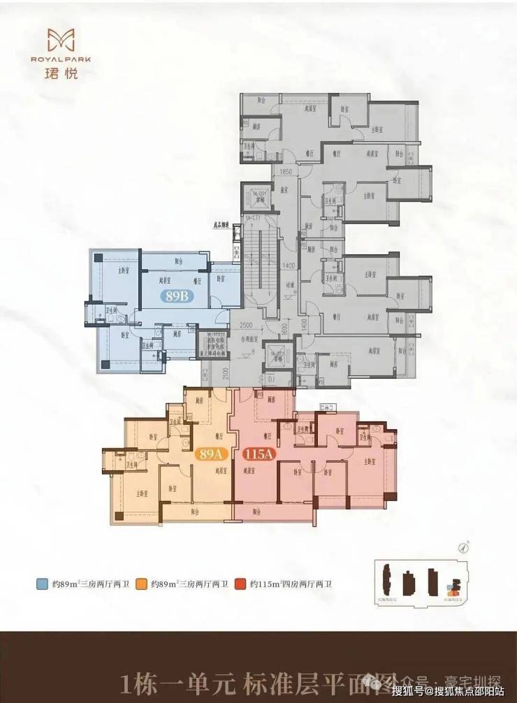 比较简单就89㎡三房和115㎡四房,新规后设计,主要通过凸窗赠送,还加上了阳台改房。赠送前使用率在77%,赠送后去到85-95%左右。