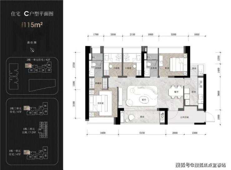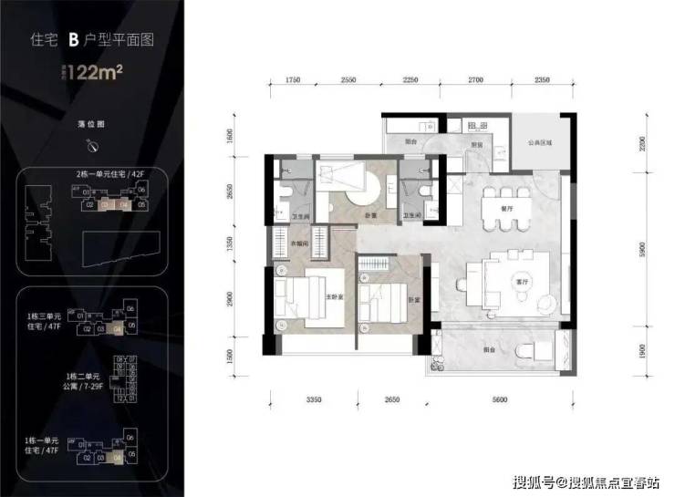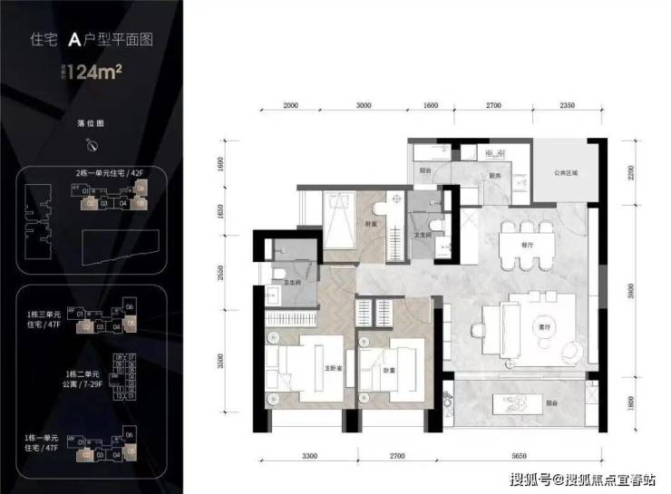 住宅1栋一/三单元47层 住宅2栋一单元42层 公寓29层
