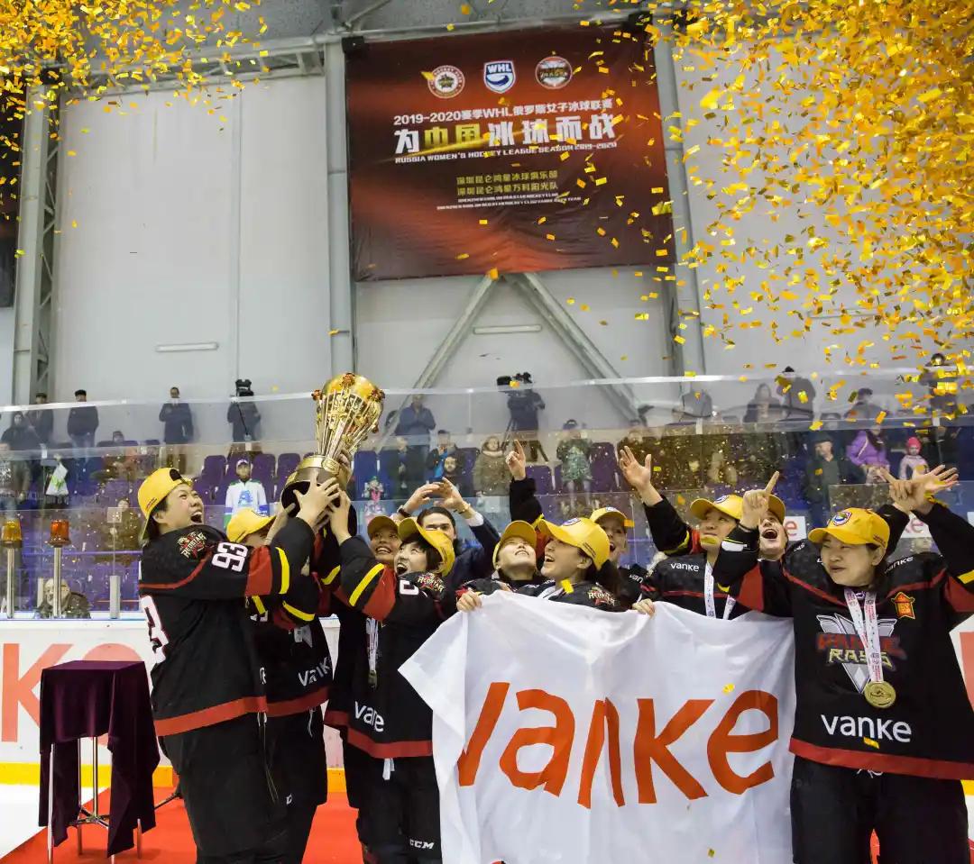 ▲2020年3月11日,深圳昆仑鸿星万科阳光队俄罗斯女子冰球联赛夺冠