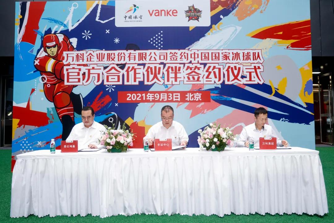 2021年9月3日下午,万科企业股份有限公司正式和国家体育总局冬季运动管理中心、昆仑鸿星冰球俱乐部签约——万科成为中国国家冰球队的官方合作伙伴。