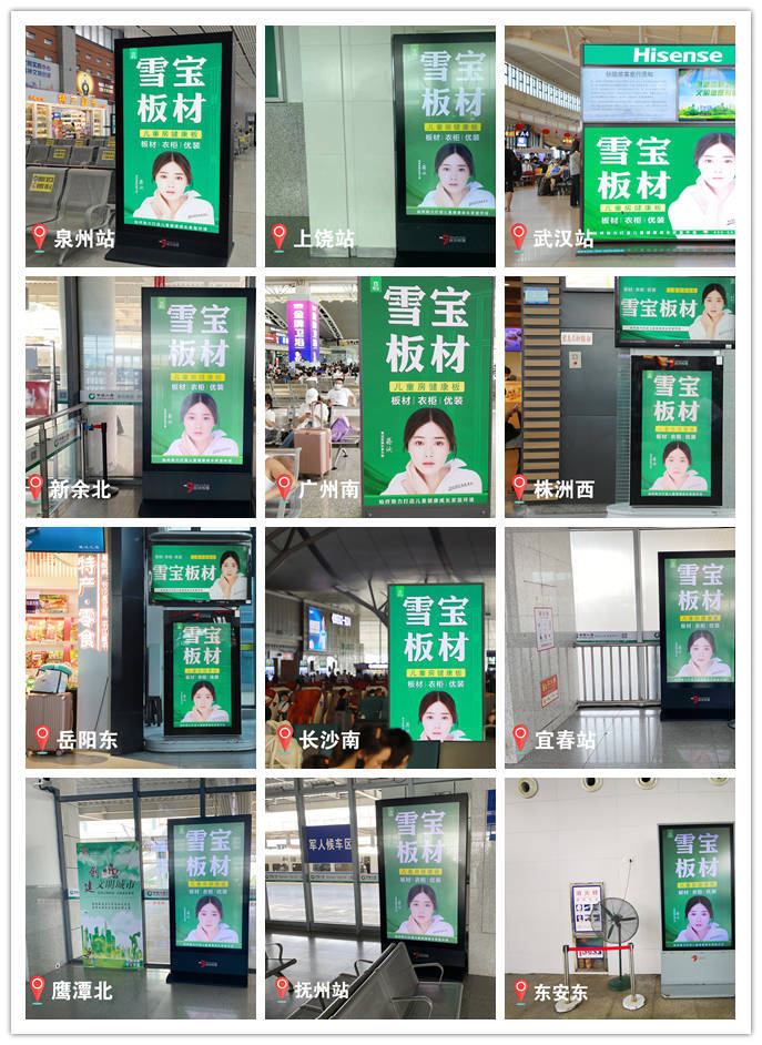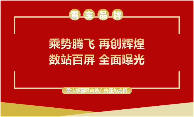 既是彰显品牌形象,更是占领品牌实力制高点!雪宝品牌高铁广告在广州南、福州、武汉、长沙、长沙南、南昌西、泉州、漳州、莆田、柳州、郴州、郴州西、衡阳东、株洲西、岳阳东、东安东、赣州西、上饶、鹰潭北、新余北、宜春、抚州、景德镇北、吉安西、荆州等大型高铁和铁路枢纽站,通过站内大量广告屏,全面覆盖各站点重要客流端口,让乘客感受雪宝品牌的实力与魅力!