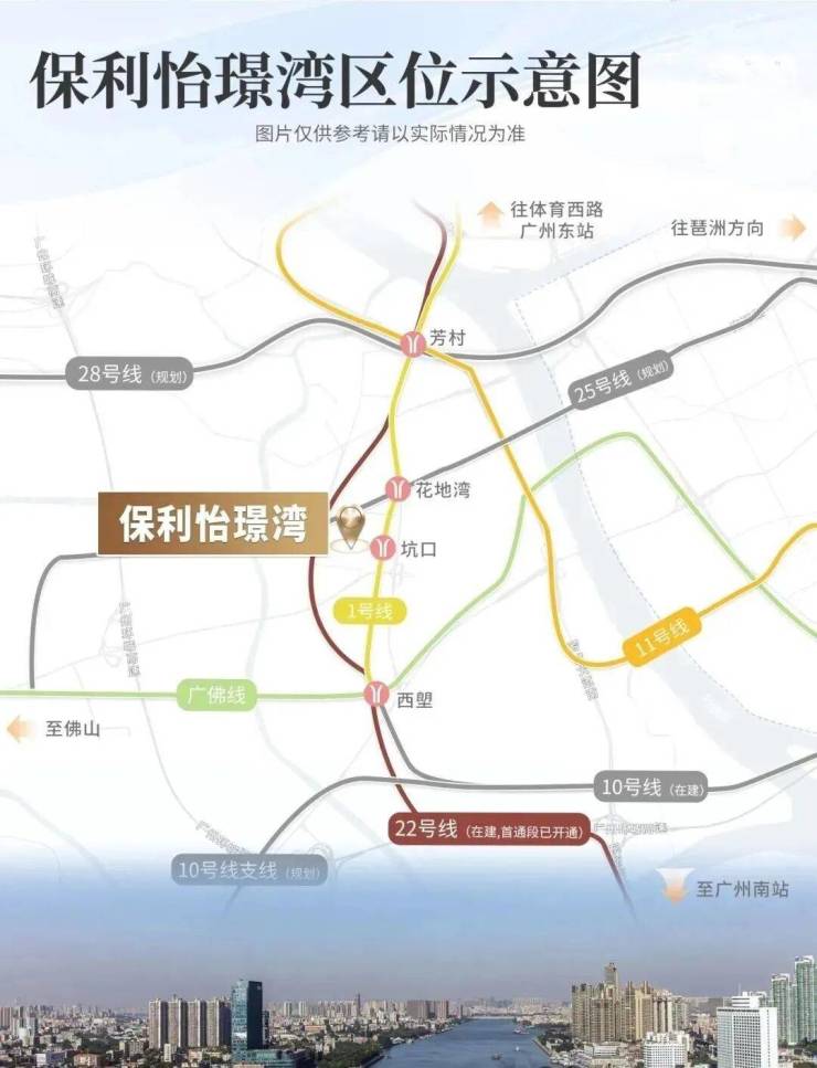 项目紧邻地铁1号线坑口站约500米,步行5分钟可达。通过坑口站可换乘11号线、广佛线及2025年通车的10号线,10分钟直达天河、越秀。自驾经花地大道、环城高速30分钟通达珠江新城,通勤效率极高。