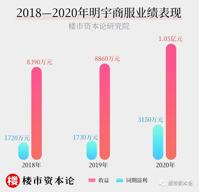 2018-2020年期间,明宇商服实现收益约8390万元、8860万元和1.05亿元,同期溢利为1720万元、1730万元、3150万元。