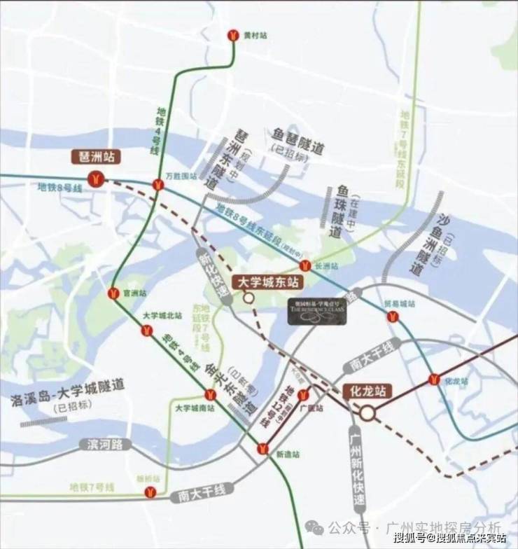 项目虽然距离地铁4号线新造站、大学城南站约3公里,但设有专属楼巴车接驳。自驾方面,南大干线、新化快速等主干道贯穿,可通过6大跨江隧道快速连接海珠、天河等中心区,通勤效率较高。