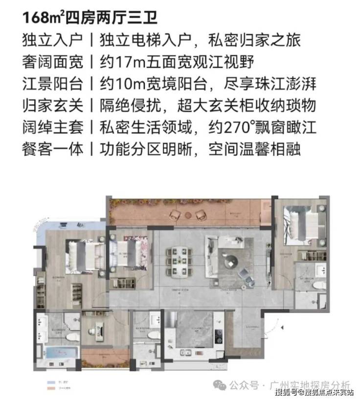 项目分为两期,一期建筑面积约120-220方的江岸立序之作,二期推出建筑面积约210-345平的珠江藏品。