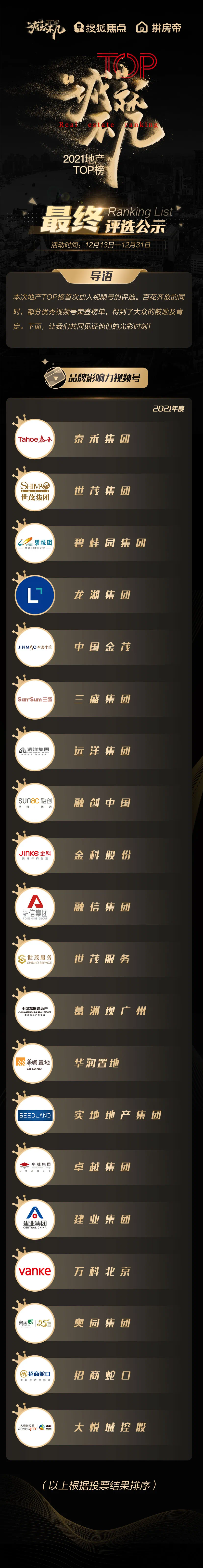 重磅揭晓!搜狐焦点&拼房帝2021地产TOP榜来了
