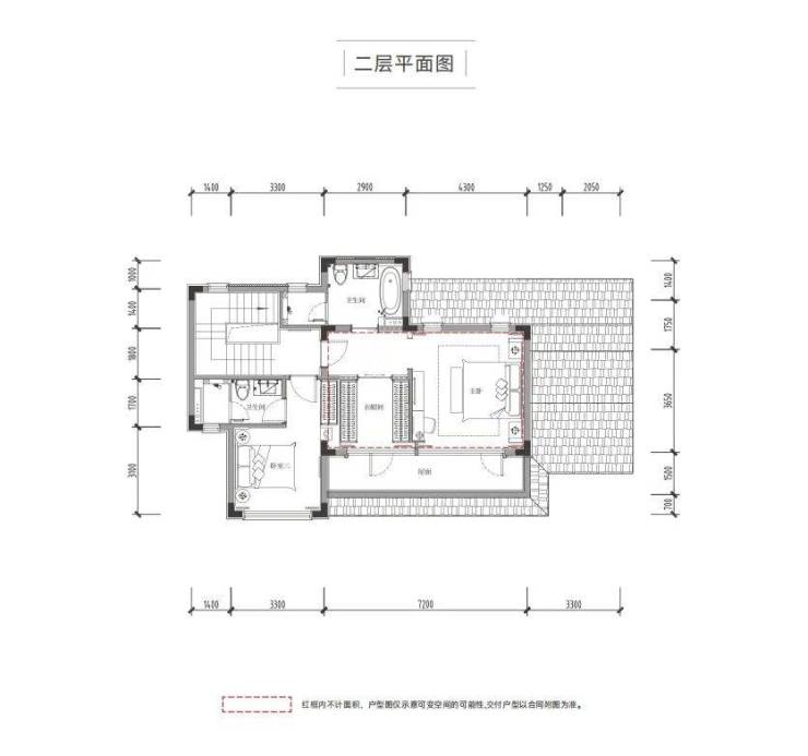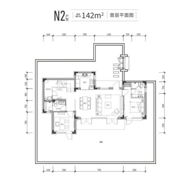 以约142㎡户型为例,可设计为4房4卫,一楼奢适的餐客一体大方厅,可作为一家人的度假生活中心,二楼还拥有两个套房,带孩子和父母周末小住、更带有约110㎡花园,足够你种上一圈花草修竹,摆一个茶几两把躺椅,夏天果树成荫,冬天红梅傲立,生活的烟火气立马就出来了。