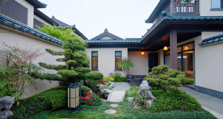 在这里,滨江打造了 366席唐风合院,约0.3超低容积率 , 每户都享有超大的花园庭院,和可以耕云种月的四季牧歌良田。 院子里绿荫浓郁,风沿着婆娑树影流转,踱步院中,丝丝凉意,于心间绽放。 取一把椅子,泡一壶清茶,于树下或檐下落座, 记忆里的夏天,就回来了。