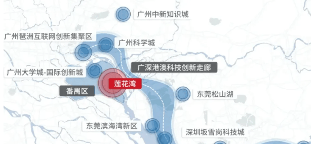 珠江未来城位于粤港澳大湾区的核心地带,是广州最具价值纵、横双中轴交汇的“黄金眼”。根据番禺区十四五规划,该区域将重点发展高新科创产业,形成“双轴三区多园”的现代产业格局,旨在推动番禺GDP迈向3000亿元的新台阶。莲花湾板块作为广深科技创新走廊的科技创新中心,链接广州南北发展的战略支点,是承接大学城科研成果转化的重要承载区,具有显著的人才、生态和价值优势。