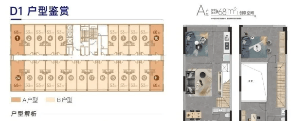 创意空间:36-68平方米,设计灵活,适合创业或居住。