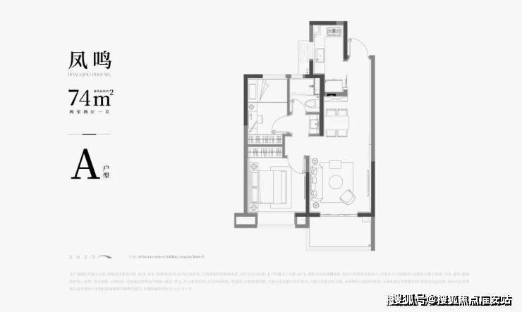 A户型|建面约74㎡2房户型图▼