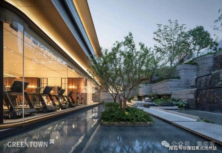 重点是作为一个整体抬高约3.7米的项目,地面层的生活馆、茶室,负一层的私宴厅、棋牌室、健身房、恒温泳池、瑜伽室,都朝向风景敞开。