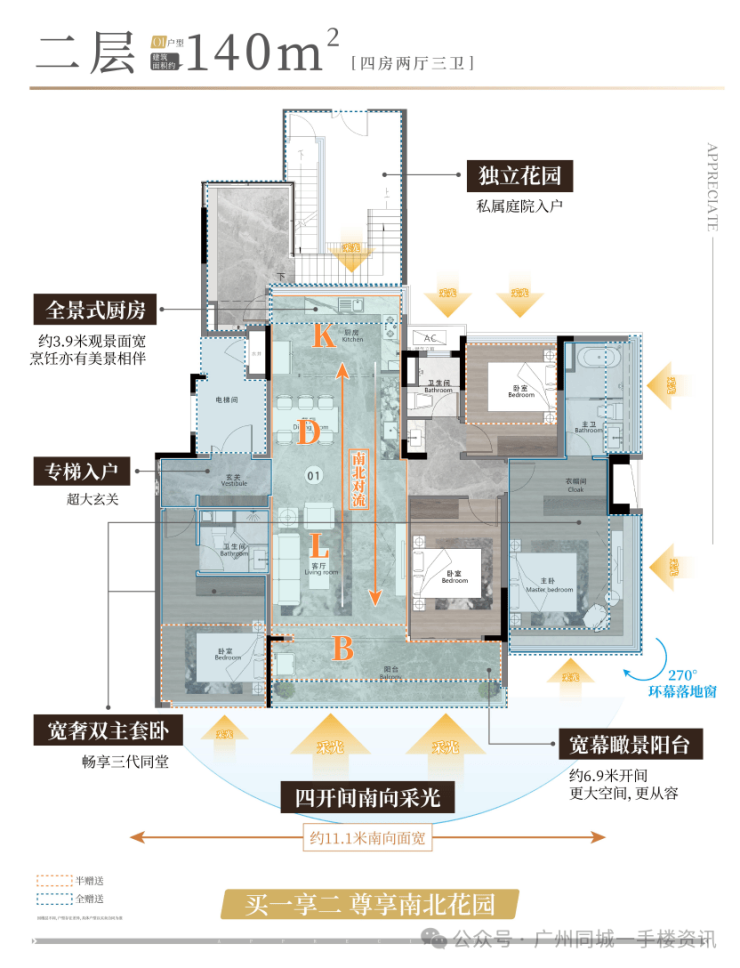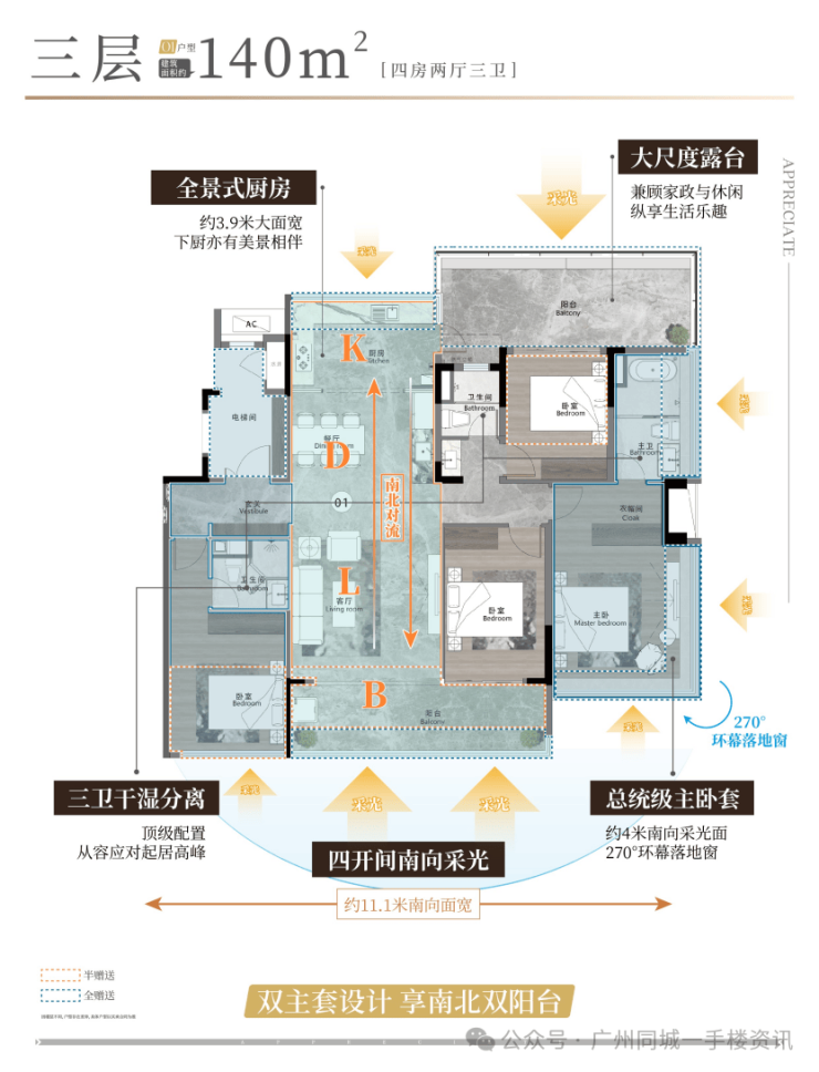 建面约140㎡ 四房二厅三卫 超110%使用率 全南向