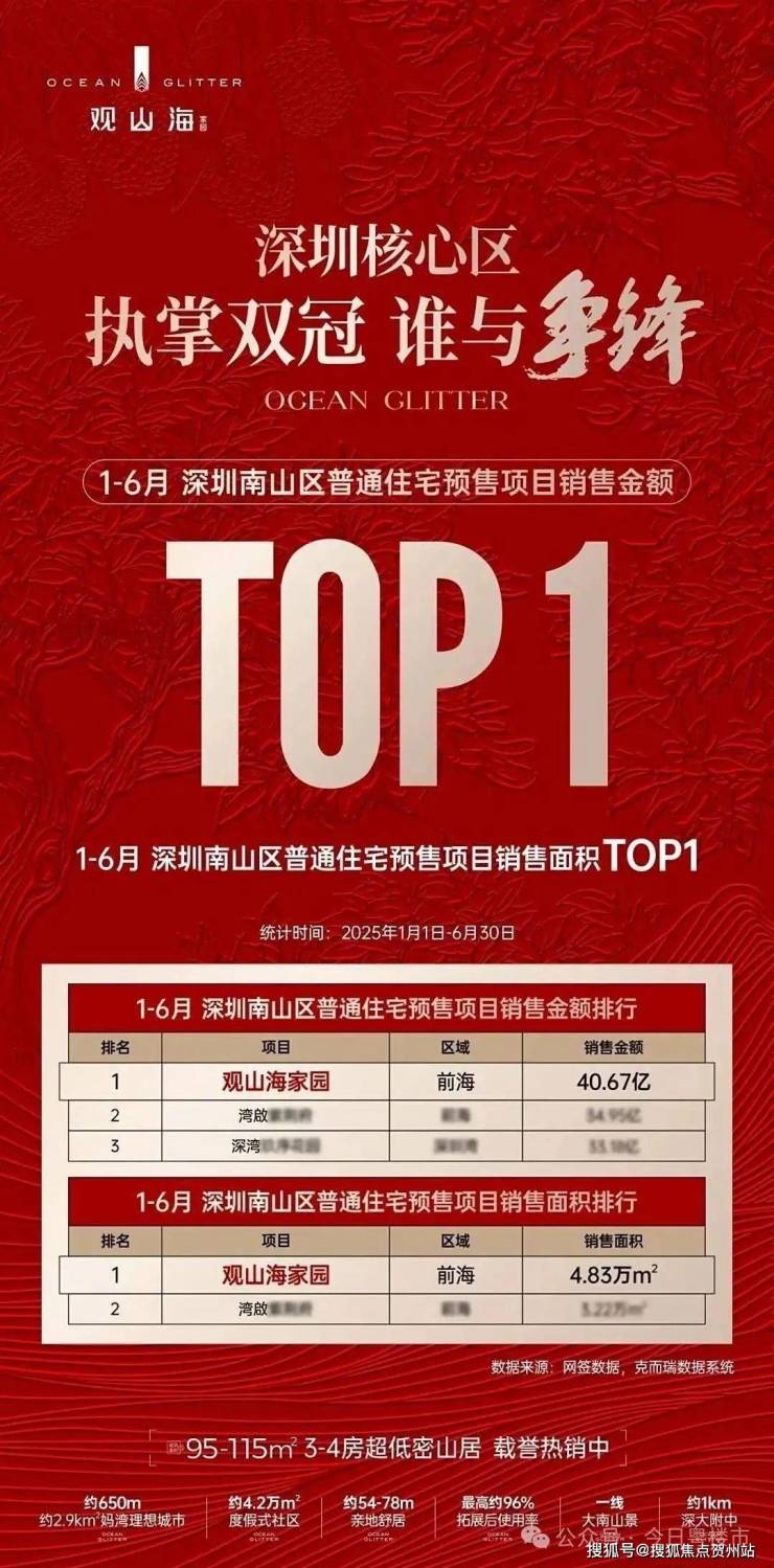 前海现象级红盘观山海家园以40.67亿销售额登顶双冠王,9米水庭院瀑布实景呈现低密山居生活,138㎡楼王单位即将限量推出,用'核心地段+稀缺资源+硬核产品力'重构深圳置业新标准。"